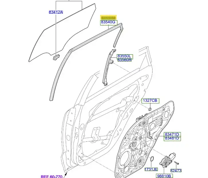 Prowadnica szyby tylnej lewa KIA Niro Hybrid (2016-2022)