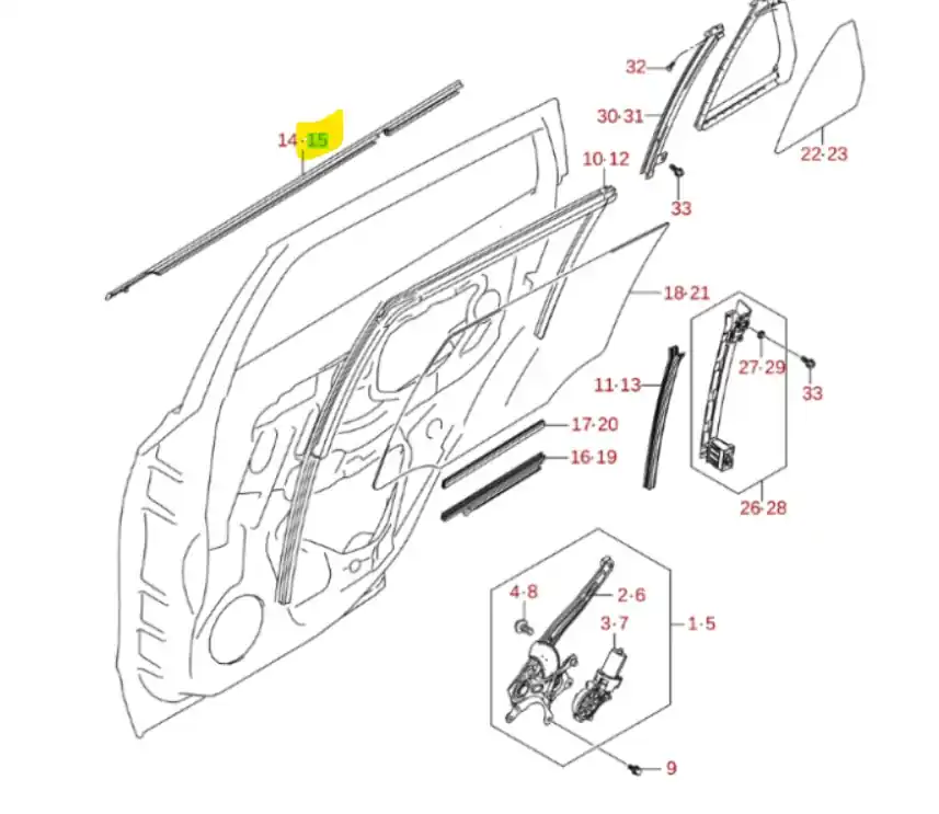 Listwa zewnętrzna szyby drzwi tył lewa Suzuki SX4 / S Cross