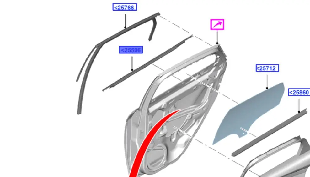 USZCZELKA-KANAŁSZYBY DRZWI,LEWA STR.(BEZ ZEWN. LISTEW RAMY DRZWI)