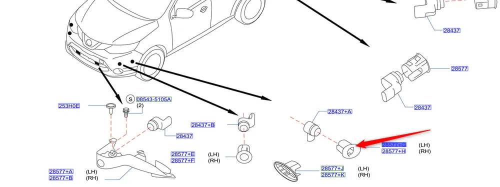 Mocowanie czujnika parkowania przód lewe Nissan