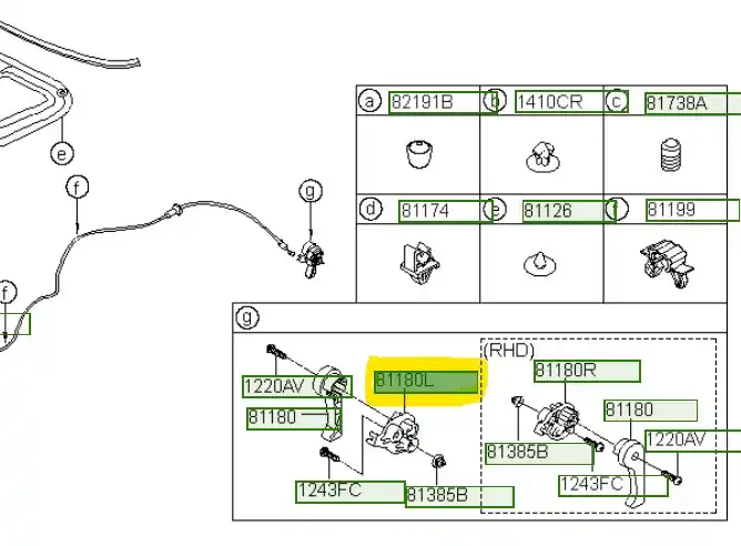 Mechanizm otwarcia maski silnika Hyundai i30