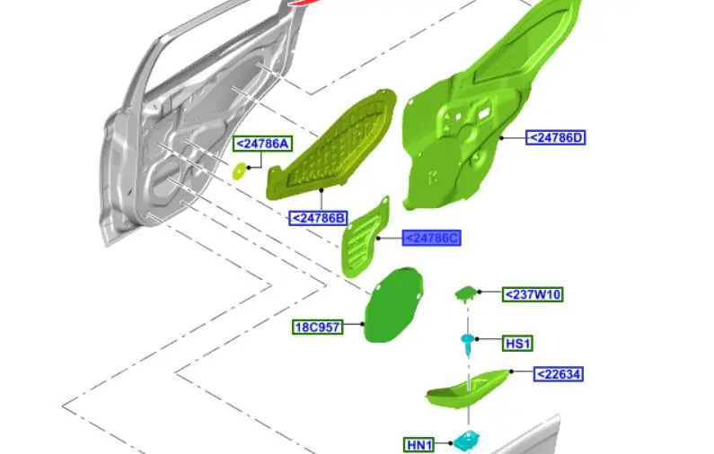 Osłona wewnętrzna drzwi lewy tył Ford KA 2016 – 2019