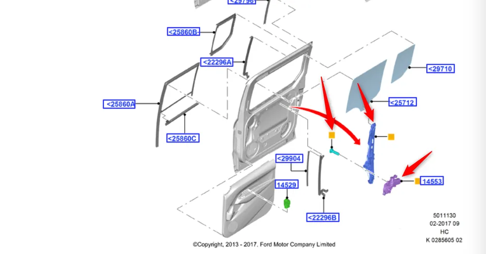 Podnośnik szyby drzwi przes. lewych Ford Connect 2013 –