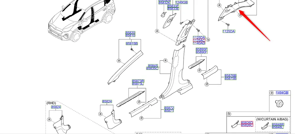 Poszycie słupka C prawego Kia Sportage 2018 – 2022