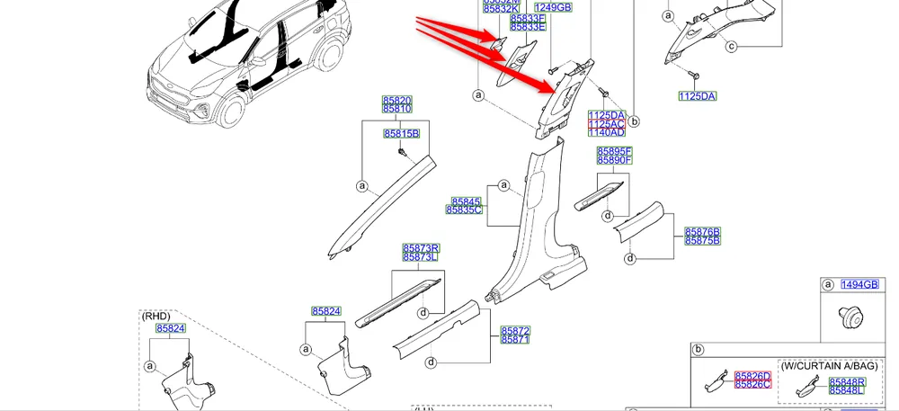Poszycie słupka środkowego prawego Kia Sportage 2018 – 2022