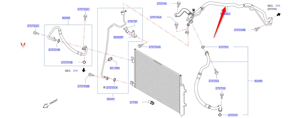 Przewód klimatyzacji Nissan X-Trail 2014 – 2022