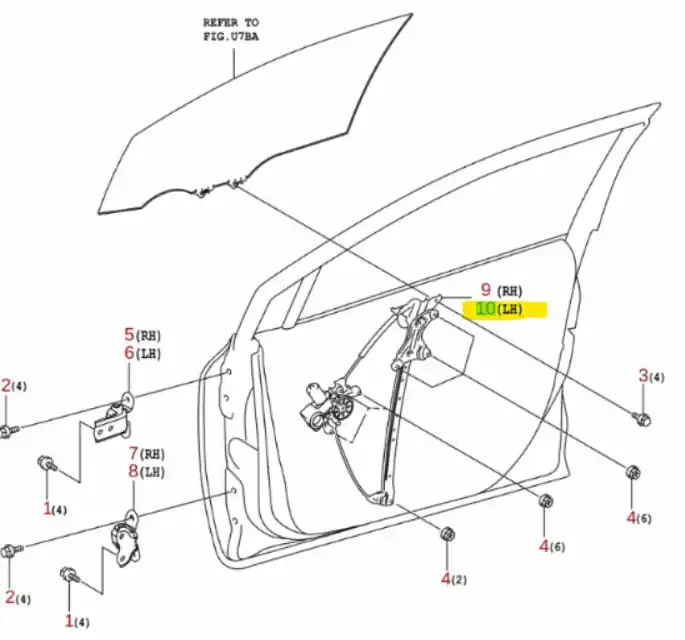 Podnośnik szyby drzwi lewy Suzuki Swace