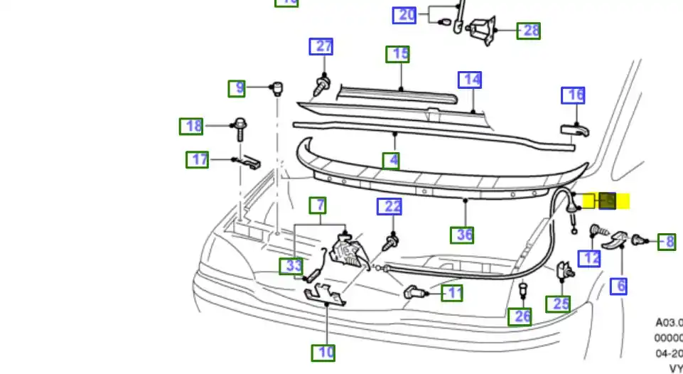 Linka otwierania pokrywy bagażnika Ford Galaxy 2000 -2006
