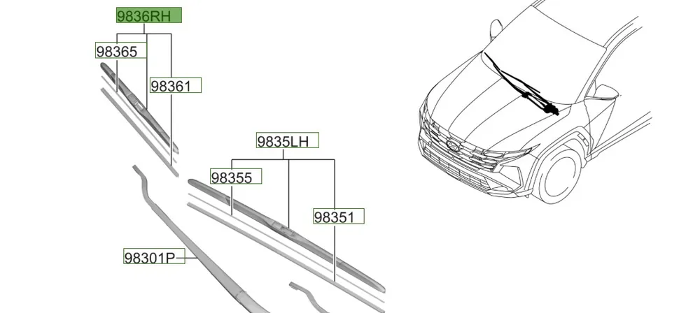 Pióro wycieraczki pasażera Hyundai Tucson (2024)